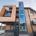 Fatada ventilata realizata cu panouri compacte din HPL, MEG