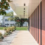 Pentru exteriorul cladirii au fost utilizate panouri ALUCOBOND® in finisajele 364 Iron Oxide Red si Pure White, o combinatie cromatica ce genereaza un contrast puternic si elegant.